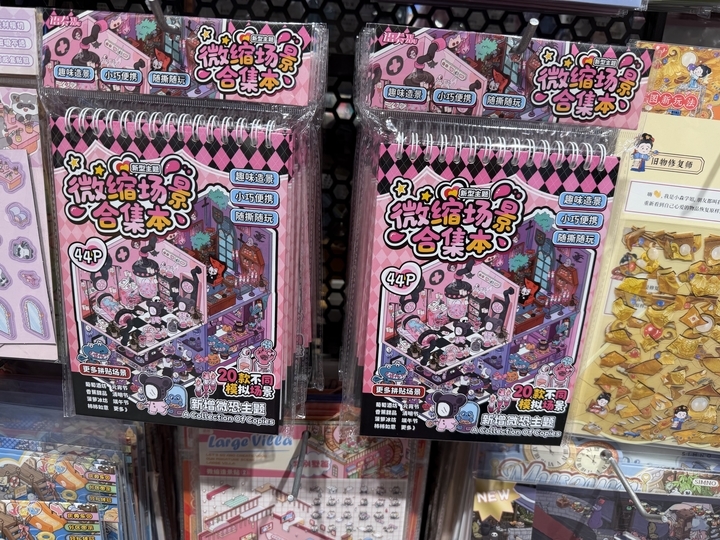 记者在货架前看到,造景贴纸按风格分类摆放,既有适合低龄学生的简易款,也有带复杂故事线、适合成年人的进阶款,涵盖“小吃街”“甜品铺”“ins小屋”等主题,部分款式还加入了可旋转、可拉动的动态组件。“这款‘百味小铺’卖得最好,每天能出十几张,很多女孩买回去贴完,还会再来回购其他款式。”店员一边整理货架,一边给记者展示热销款,“我们每周都会补货,有时候晚一步,热门款就没货了。”