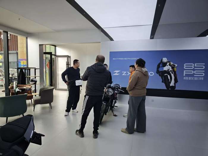记者抵达门店时,已有4名顾客正在看车。“之前张雪机车夺冠,让我注意到了这个中国摩托车品牌。我最近正好打算购车,就到店来看实车,能明显感觉到中国摩托车的发展实力不容小觑。”正在看车的李先生告诉记者。店内看车的顾客络绎不绝,金忠泽一直忙着接待、解答车辆问题,十分忙碌。“今天另一位同事请假,人手不够,实在有点忙不过来。”他抽空对记者说道。