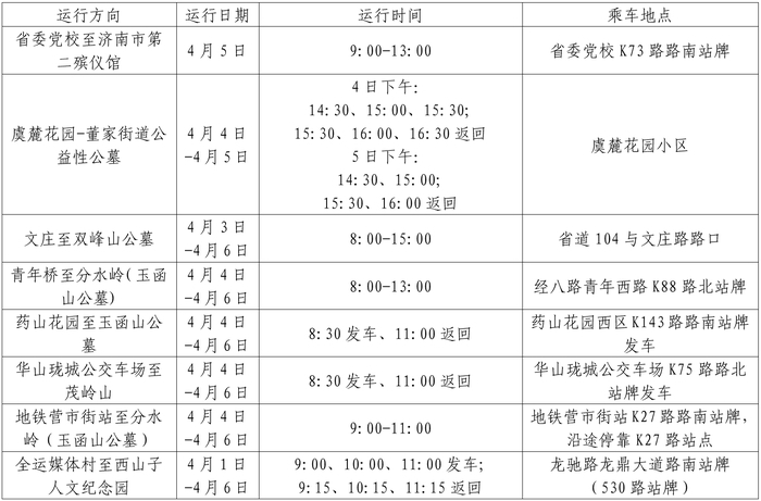 为精准满足市民祭扫出行需求,济南公交将推出8条祭扫专线,市民乘客可根据发车时间,到指定乘车位置乘坐。