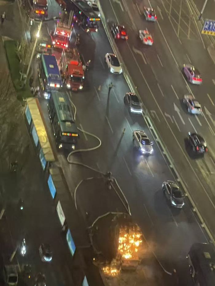 目击者李女士介绍:“晚上8点5分左右路过此处时,发现路段出现拥堵,走近后才看到经十路山大路公交站牌附近有火情,后得知是废品运输车上的纸板起火。”她表示,火情发生后不久,消防救援车辆便抵达现场开展处置工作。