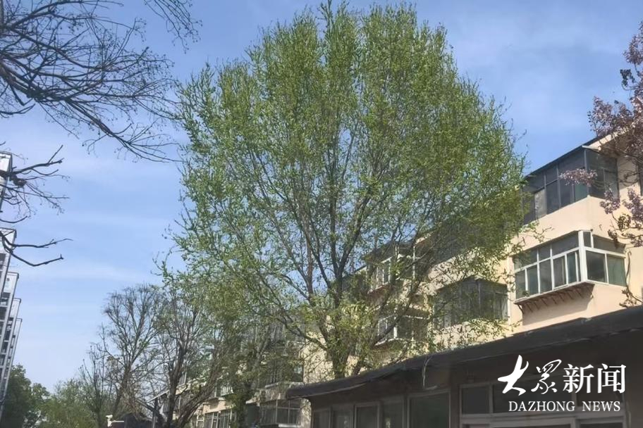 山大路经十路公交站附近的小巷子里,藏着一棵烟火气十足的榆树。长势很旺,但枝条偏高,想摘的话得带上梯子。