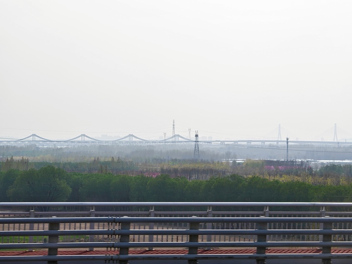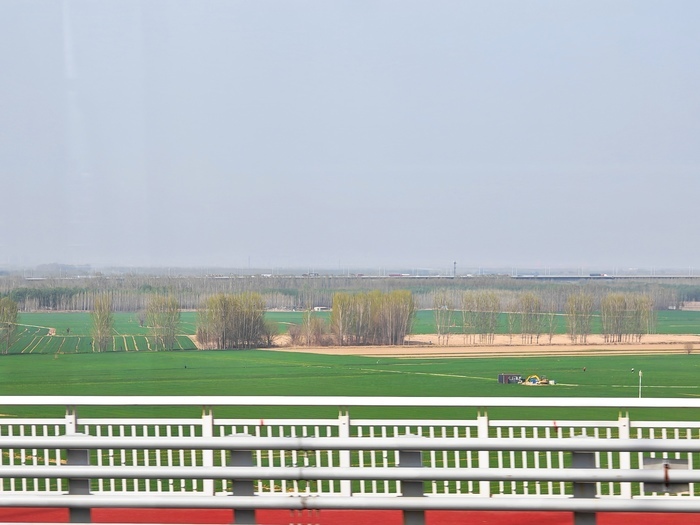 济南东站到崔寨站是全线距离最长、运行时间最久的一段,也是风景最美的一段。窗外,成片的杨树、杏树、榆叶梅交相成组,广袤平坦的田地上,绿色、黄色和粉色交织成一幅独特的北方春色画卷。