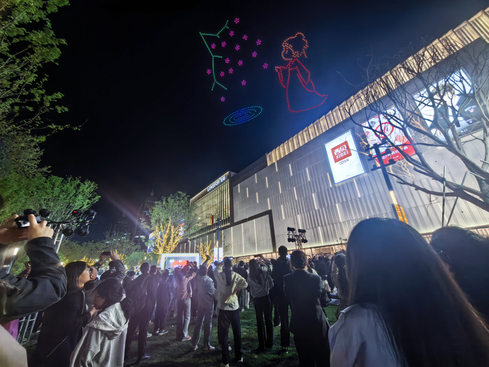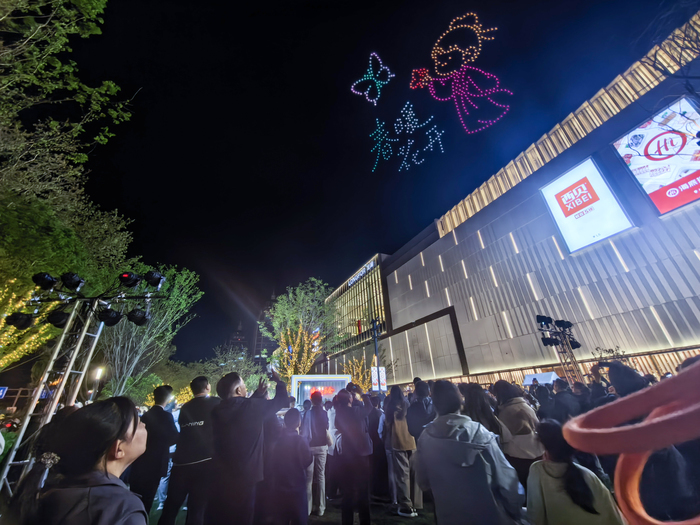 4月10日夜,济南西城的天际线被一场“音乐+科技”的跨界盛宴点亮。龙湖济南西城天街户外广场首次启幕“晚风音乐会”,联合山东省大剧院艺教中心实力歌手,倾情演绎青春经典歌曲专场。晚上7时30分,数架无人机低空同步升空,以夜空为幕演绎“醒春”主题光影画卷——音符流淌间,无人机队列幻化为春风、新芽与跃动的旋律,与现场歌声精准合拍,为市民带来一场沉浸式的视听共振。