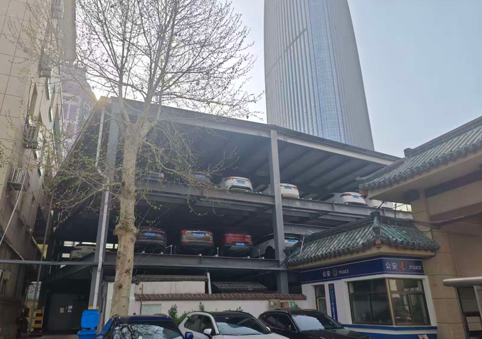 记者观察到,该立体停车场约有30个车位,已有近20辆车停入,但未发现新能源车停放其中。停车场安保人员介绍:“立体停车场很少有停满的时候,大部分SUV电车都停在院内的地面车位。”