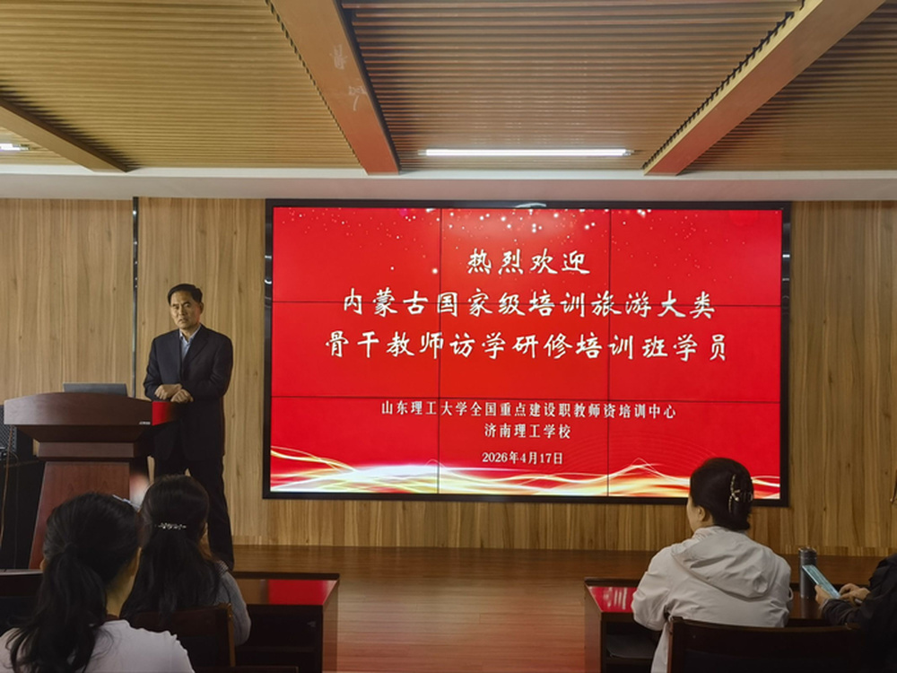 4月17日上午,山东理工大学全国重点建设职教师资培训基地组织内蒙古国家级培训旅游大类骨干教师访学研修培训班一行50人,到济南理工学校开展考察学习活动。济南理工学校校长鹿学俊、副校长孟怀谷及相关科室负责人参与接待并陪同交流。