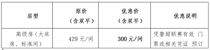 有效凭证:预订及入住时需出示2026年鲁超联赛有效门票、电子票或官方认可的球迷身份证明。