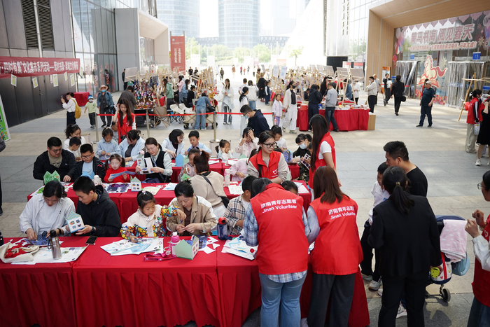 下午的舞台同样精彩纷呈。山东艺术学院带来的“大手拉小手”亲子阅读体验营上,大学生们带领孩子们读书、做非遗绳结,感受阅读乐趣与非遗魅力。济图银龄书友会邀请《重走长征路》作者团亲临现场,与读者分享创作背后的故事,引发不少读者的共鸣。少儿、老年、亲子类阅读推广活动轮番上演,涵盖趣味阅读、非遗体验、诗词咏诵、有奖答题等多种形式,真正做到“场场有亮点,时时可参与”。