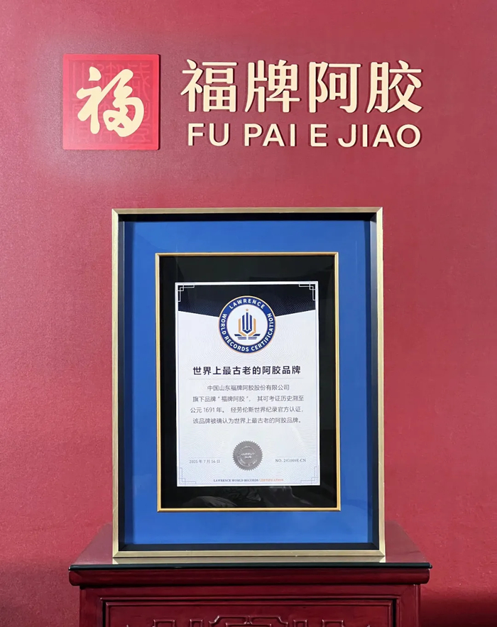 2025年,福牌阿胶品牌价值跃升至60.73亿元,强势跻身“中华老字号品牌价值榜TOP7”。同年,福牌阿胶被劳伦斯世界纪录认证为“世界上最古老的阿胶品牌”,被沙利文认证为“中国高端鲜炖阿胶领导者”,并荣膺“2025山东最具影响力品牌”称号……这些成绩的背后,是福牌阿胶对质量强市建设的深度践行。
