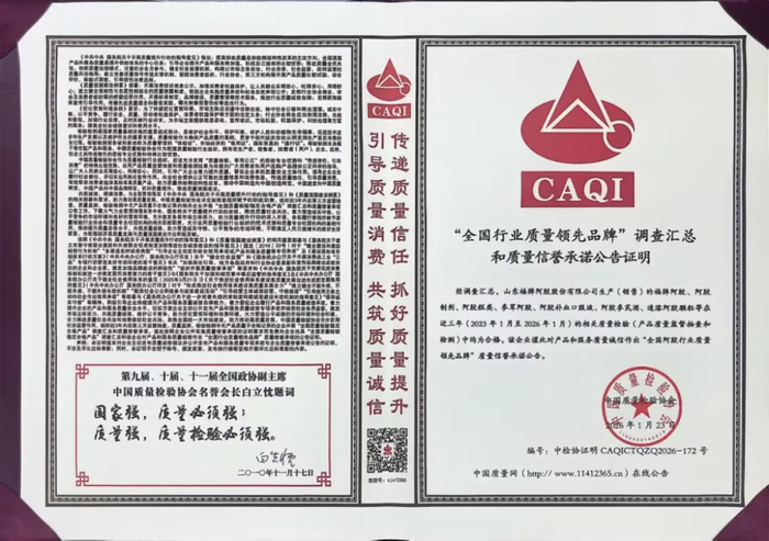 福牌阿胶获评济南市“2025年度推进质量强市建设工作表现突出企业”,既是对福牌阿胶过往成绩的肯定,更是对未来发展的鞭策。