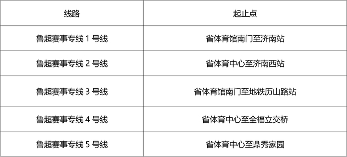 同时,为有效缓解散场时段客流压力,济南公交将根据球迷客流实际情况,开通5条齐鲁超赛专线,保障球迷朋友便捷出行。