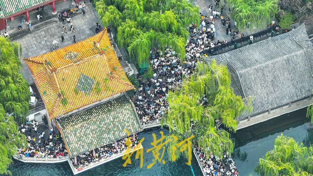 10月4日,国庆假期虽然秋雨绵绵,但济南旅游市场持续火爆,在天下第一泉风景区的趵突泉公园,作为济南三大名胜之一,自然成为了游客们争相打卡的热门景点,在趵突泉公园的核心景点三股水泉池边,无数游客形成客流大潮,前来参观、赏泉、拍照的游客络绎不绝。从高空俯瞰,三股水的泉池四周围满了游客,争相一睹泉水涌动的风采。