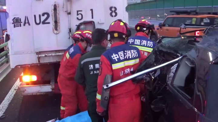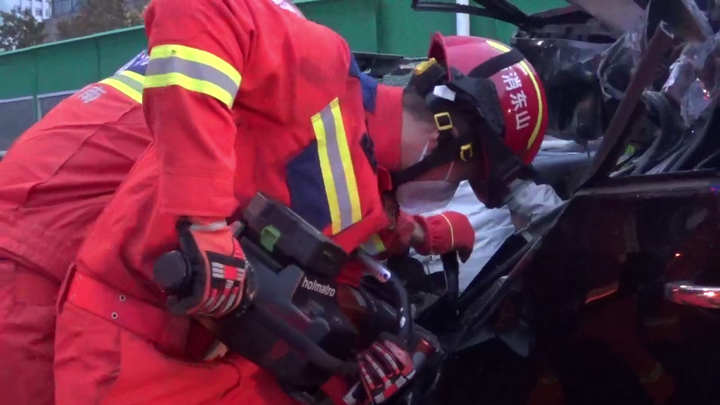 10月30日6时,济南市历下区二环东高架南向北方向发生一起车祸,一名人员被困,情况十分紧急。接到报警后,济南市消防救援支队茂岭山消防救援站消防救援人员立即赶赴现场。