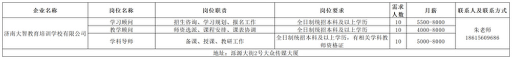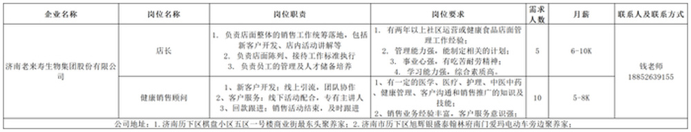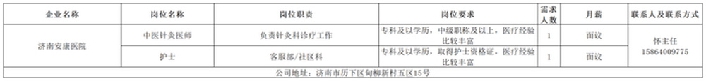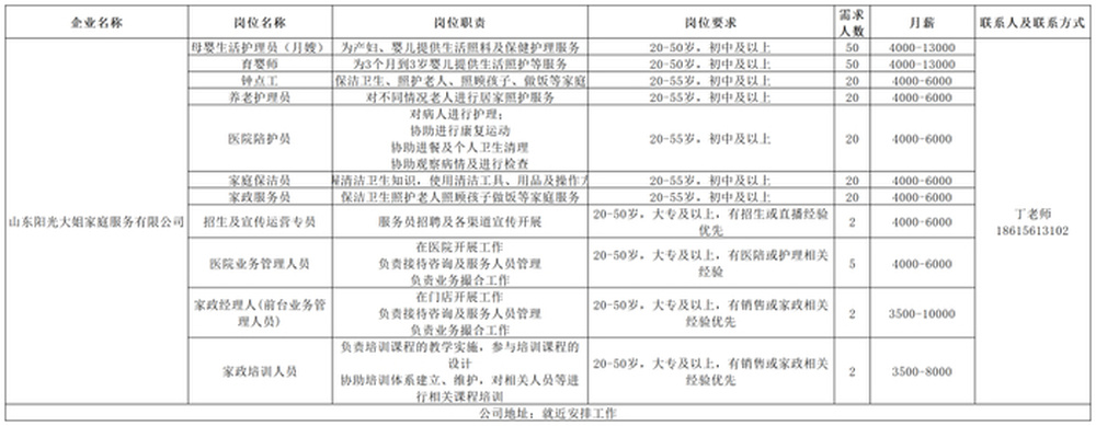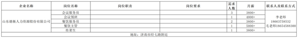 招聘岗位信息近期有效,有应聘意愿的求职者可与招聘企业直接联系,详情如下: