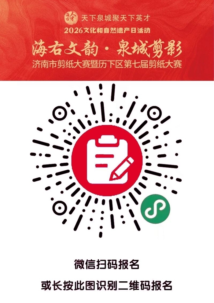 海右此亭古,济南名士多。为迎接2026年“文化和自然遗产日”,“海右文韵·泉城剪影”济南市剪纸大赛暨历下区第七届剪纸大赛(简称“大赛”)作品征集已正式启动。