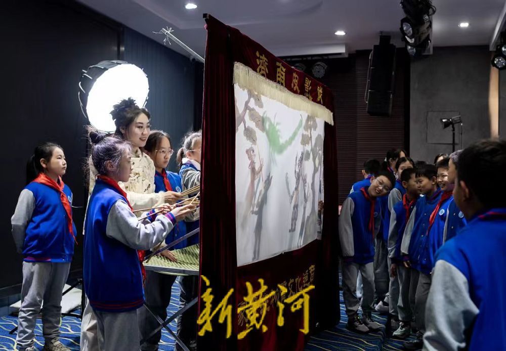 她丰富剧本,补充、修复道具,并乘着“非遗进校园”的东风,将济南皮影的舞台搬进了中小学的课堂和幼儿园的活动室。她为孩子们“量身定制”童话故事皮影戏、传统文化皮影戏,并邀请孩子们上台体验简单的皮影操作,让孩子近距离接触皮影,把济南皮影戏的种子播撒进孩子们的内心。