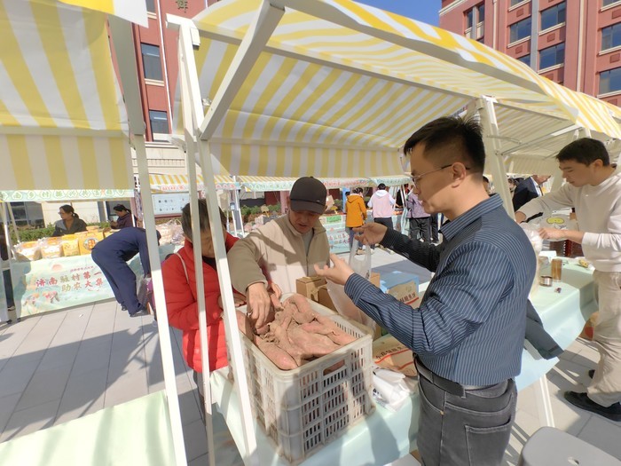 10月29日至30日,济南乡村振兴共富超市重阳节现场展销活动在济南市老年人大学北辰广场举办。来自全市及周边13个区县的80余名驻村第一书记齐聚一堂,为帮扶村的140余种优质农产品现场“代言”,让新鲜地道的乡村好物直达老年人身边。