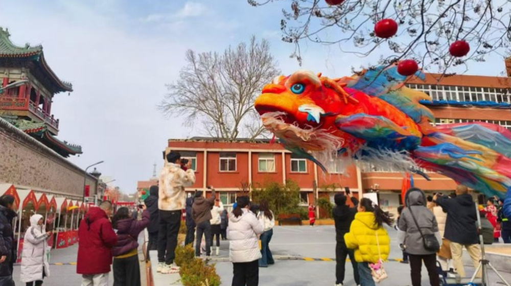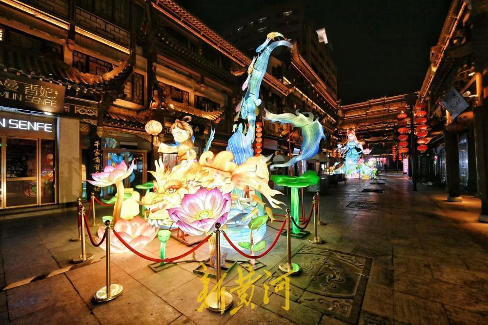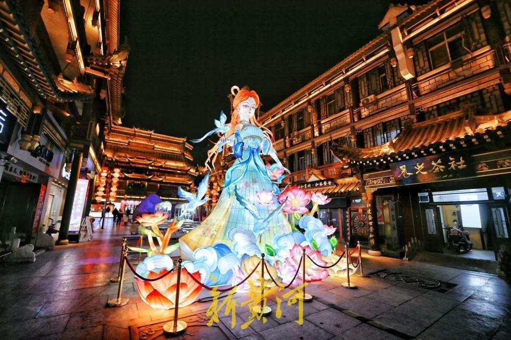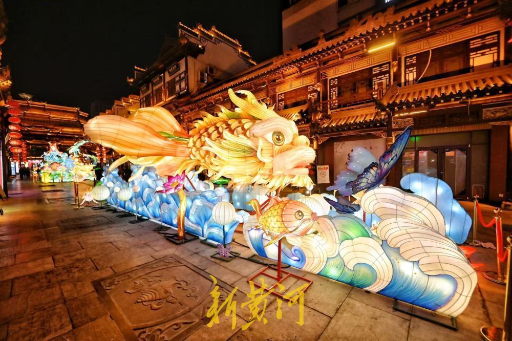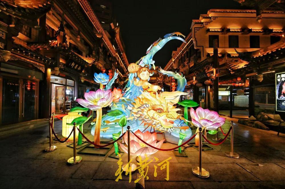 2月12日晚,春节将至,老商埠大观园内年味愈浓,以“龙腾盛世”“碧荷仙姬”等传统文化为题材的大型灯组将百年商埠装点得分外迷人。
