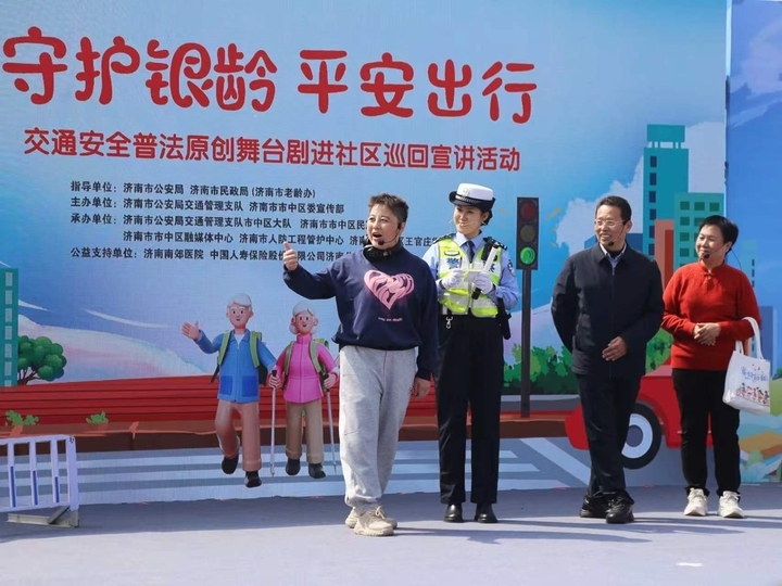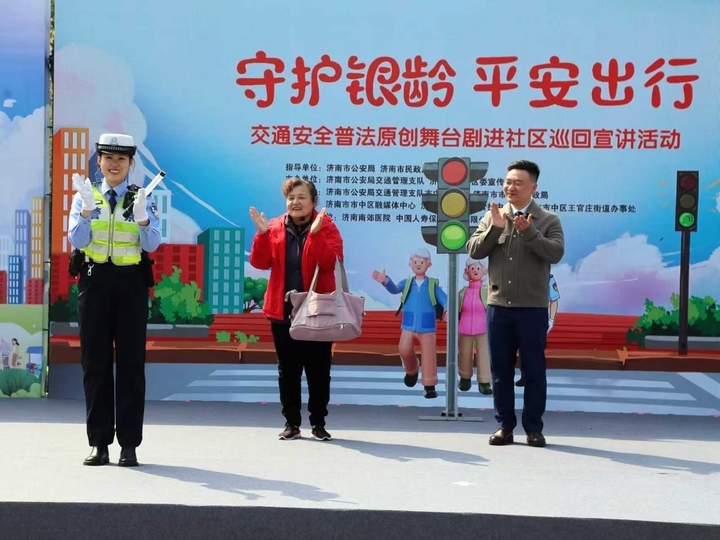 普法原创舞台剧“牵线搭桥”,推动交通安全普法入脑入心。4月10日上午,“‘守护银龄平安出行’交通安全原创舞台剧巡回宣讲活动”启动仪式在济南市市中区大众广场举行。一场别开生面的原创舞台剧上演,生动新奇的普法形式引得市民纷纷驻足。
