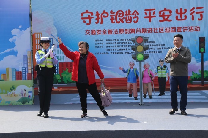 原创舞台剧“牵线搭桥”,推动交通安全普法入脑入心。4月10日上午,“‘守护银龄 平安出行’交通安全原创舞台剧巡回宣讲活动”启动仪式在济南市市中区大众广场举行。一场别开生面的原创舞台剧精彩上演,生动新颖的普法形式吸引众多市民驻足观看。