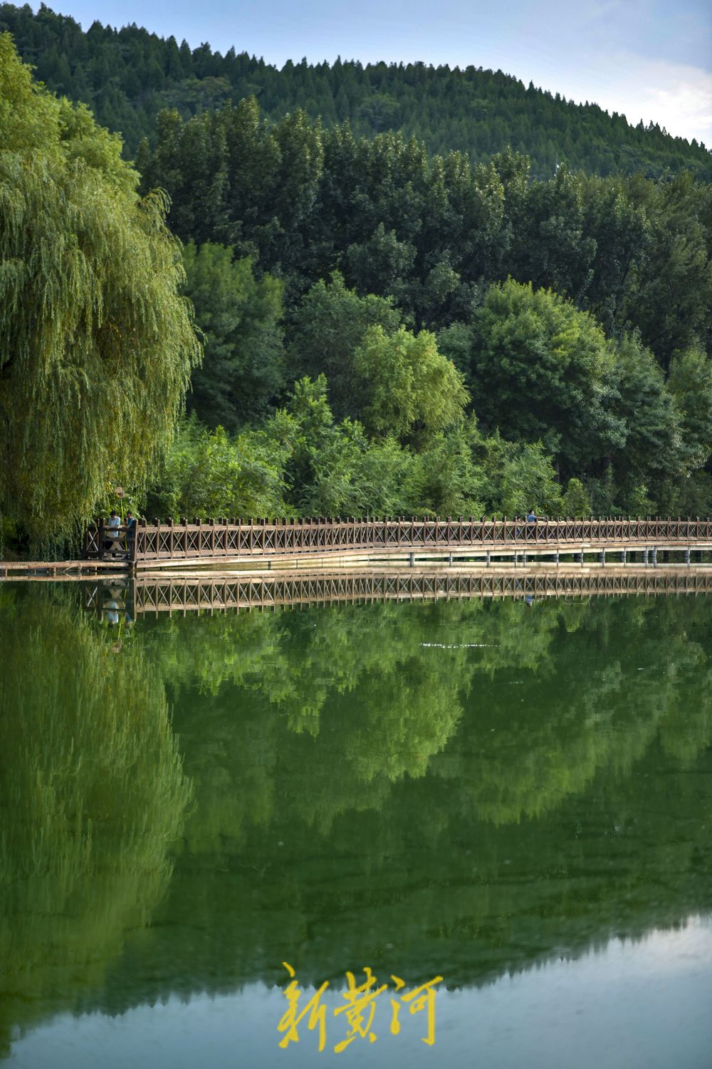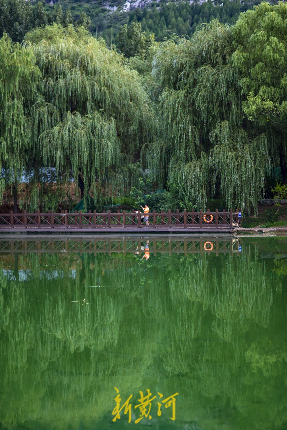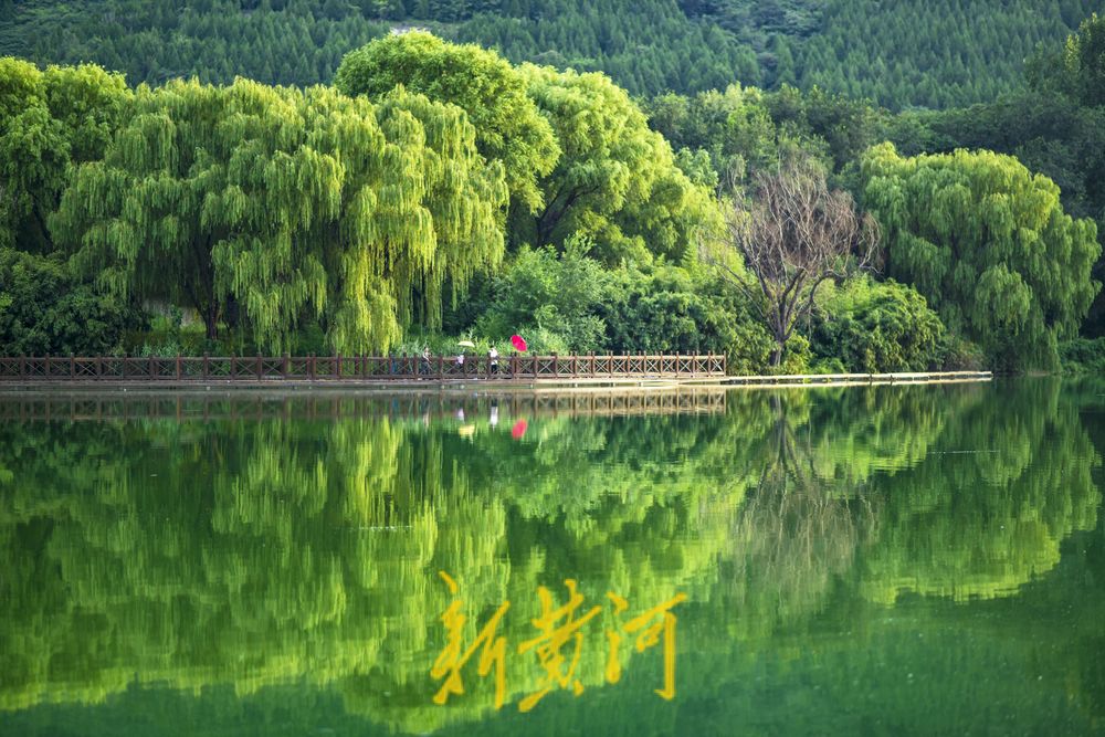 连日来,济南持续降雨,为河道湖泊补充了水源。8月18日,西部城区腊山分洪道已经蓄满水,碧绿的水面倒映着绿树和群山,上演了西城版“佛山倒影”,市民在河畔漫步、垂钓、纳凉,感受泉城“后花园”的美丽景致。