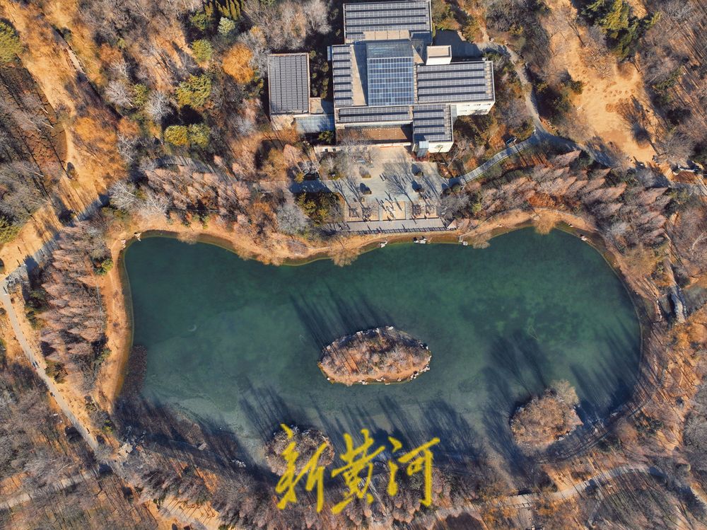 1月17日,记者在济南森林公园看到,揽翠湖湖水结冰,高大的树木在阳光的照射下在冰封的湖面上呈现错落有致的倒影,高空俯瞰,一幅宁静、浪漫,且富有诗意的画卷徐徐展开,美不胜收。