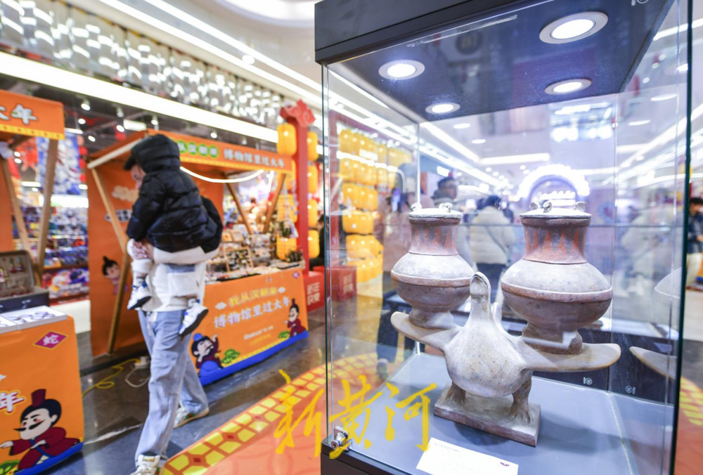 济南弘阳广场联合济南市博物馆及山东艺术学院管理学院策划组织“博物馆里过大年”活动,西汉载人载鼎彩绘陶鸟、西汉彩绘乐舞杂技陶俑、西汉载壶彩绘陶鸟等文物复制品将古代美学融入现代商超,带给顾客不小的惊喜。