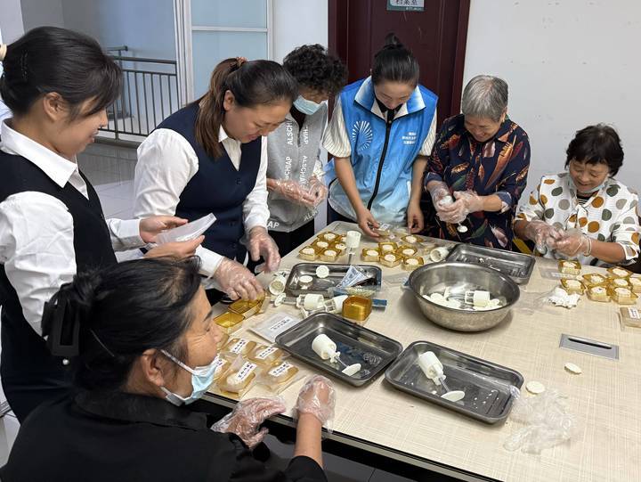 除了文旅地标的热闹,社区里的中秋同样充满温情。在槐荫区不少街道社区,冰皮月饼制作、中秋花灯DIY、主题油画创作等特色活动陆续温馨开启。社区活动室里,揉面、包馅、压模的工具整齐摆放,二十多位居民围坐在一起,有说有笑地制作中秋月饼。