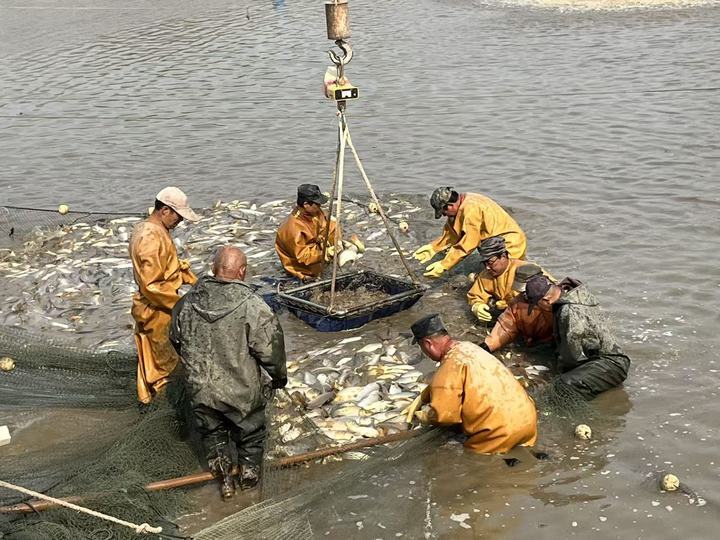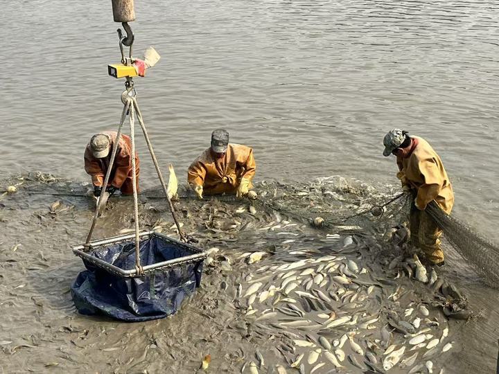 “出鱼喽!”随着一声洪亮的吆喝,满满一网黄河鲤鱼破水而出,在阳光下翻腾跳跃,溅起层层金浪。3月24日上午,济南市槐荫区睦里村的鱼塘边,养殖户陈立文满脸笑意,他养殖的数万尾黄河鲤鱼正式迎来收获季。这不仅是他的丰收时刻,更是济南市农业技术推广服务中心揭榜挂帅“黄河鲤鱼种质资源收集及高质养殖技术研究与推广”项目结出的第一网硕果。