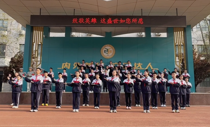 山东省济南第二十六中学的操场上,一场升旗仪式正在进行。没有传统的朗诵或讲话,取而代之的是一场“跨越时空的对话”。一名学生代表化身长征路上的革命战士,讲述雪山草地的饥饿与寒冷;台下的少先队员则用坚定而稚嫩的声音回答:今天,山河无恙,国泰民安。