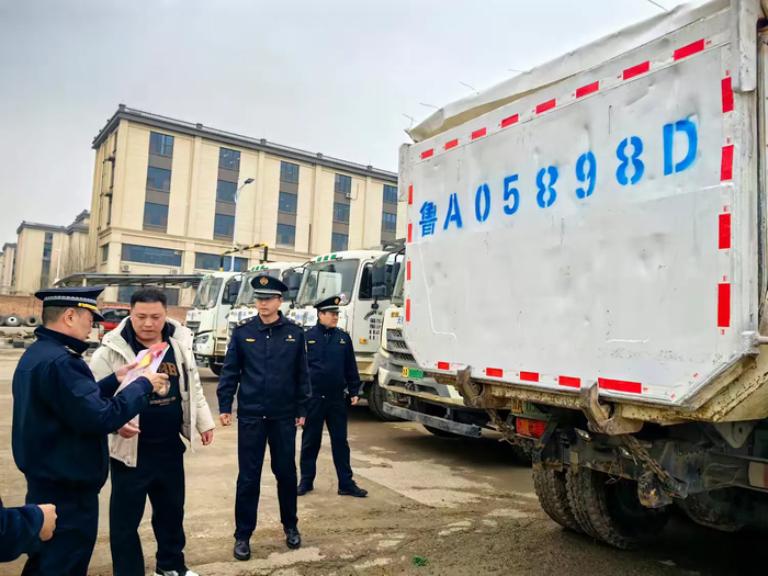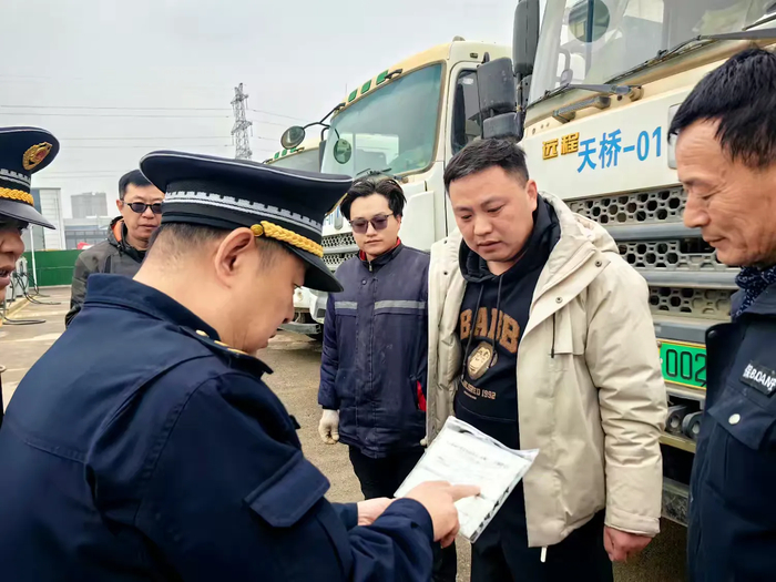 为护航节后建筑垃圾运输企业与安置房项目安全有序复工复产,2月26日,济南市城管执法支队一大队联合天桥区城管局深入辖区建筑垃圾运输企业及安置房项目建设工地,开展“上门送服务 开工第一课”活动,将政策指导、普法宣传、安全提醒送到一线,以精准服务助力城市建设提质增效。