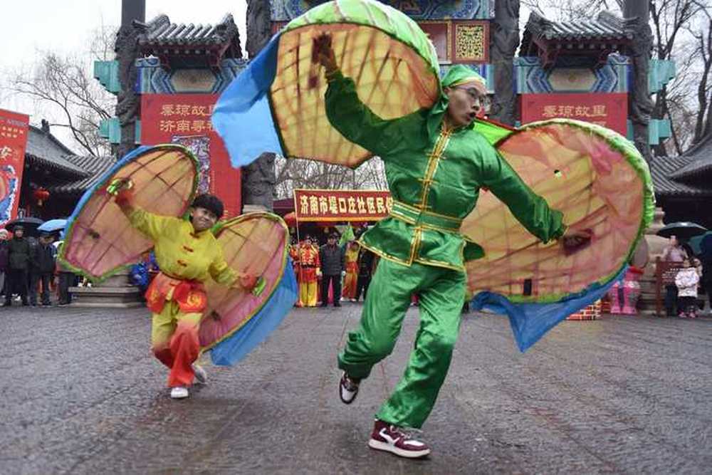 天桥区北园沃家庄、北坦庄一带,自明朝万历年间便有汉回混居的传统,不同习俗的族群在朝夕相伴的农耕劳作中,学会了共生共荣。“猫蝶富贵”正是这份包容的结晶——“猫蝶”谐音“耄耋”,是汉族文化对长寿的祈愿;手持花瓶灯走街串巷,是回族节庆的热闹传统;而武术与舞蹈的融合,则是济南市第二国术社与民间灯队的跨界携手,让刚劲与柔美有了完美碰撞。