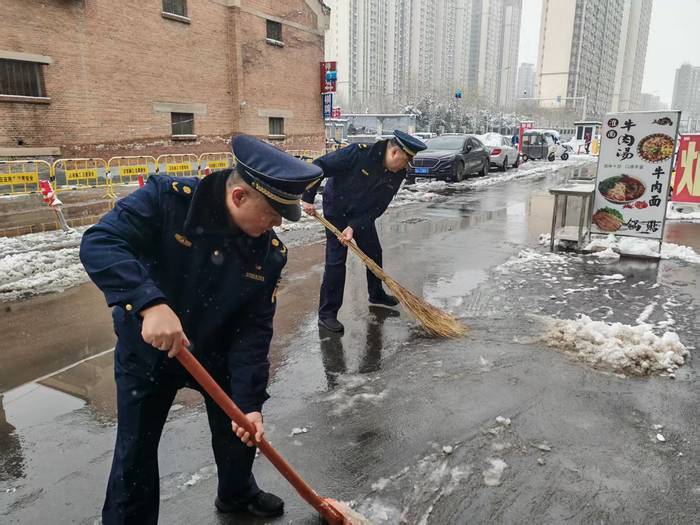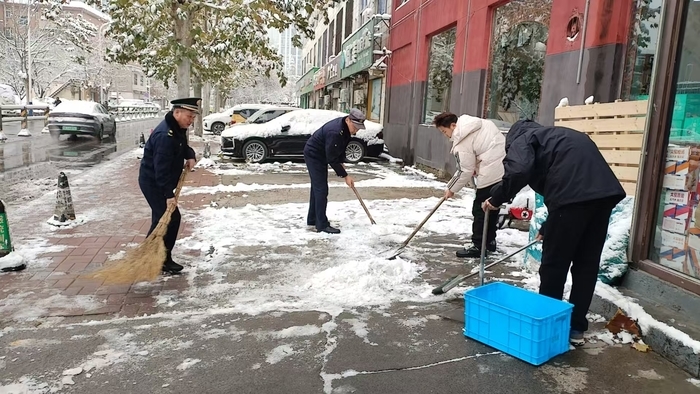 12日夜间,城区环卫党支部、智慧城管党支部党员主动扛起先锋队职责,带头落实24小时轮班制,党员先锋队队员身披反光背心,与环卫工人并肩作战,对桥梁、陡坡、路口等易结冰路段反复撒布融雪剂,通宵坚守作业一线。各执法中队党员利用作业间隙,深入沿街商户、社区楼栋,宣传“门前五包”清雪责任,动员群众参与积雪清理;全局党员联动社区党组织,组建“党员+志愿者”联合清雪队,聚焦小区、医院等重点区域开展集中攻坚。截至目前,全局累计出动党员骨干150余人次,作业范围覆盖全区所有重点路段、关键点位,用彻夜坚守生动诠释“一名党员就是一面旗帜”的深刻内涵。