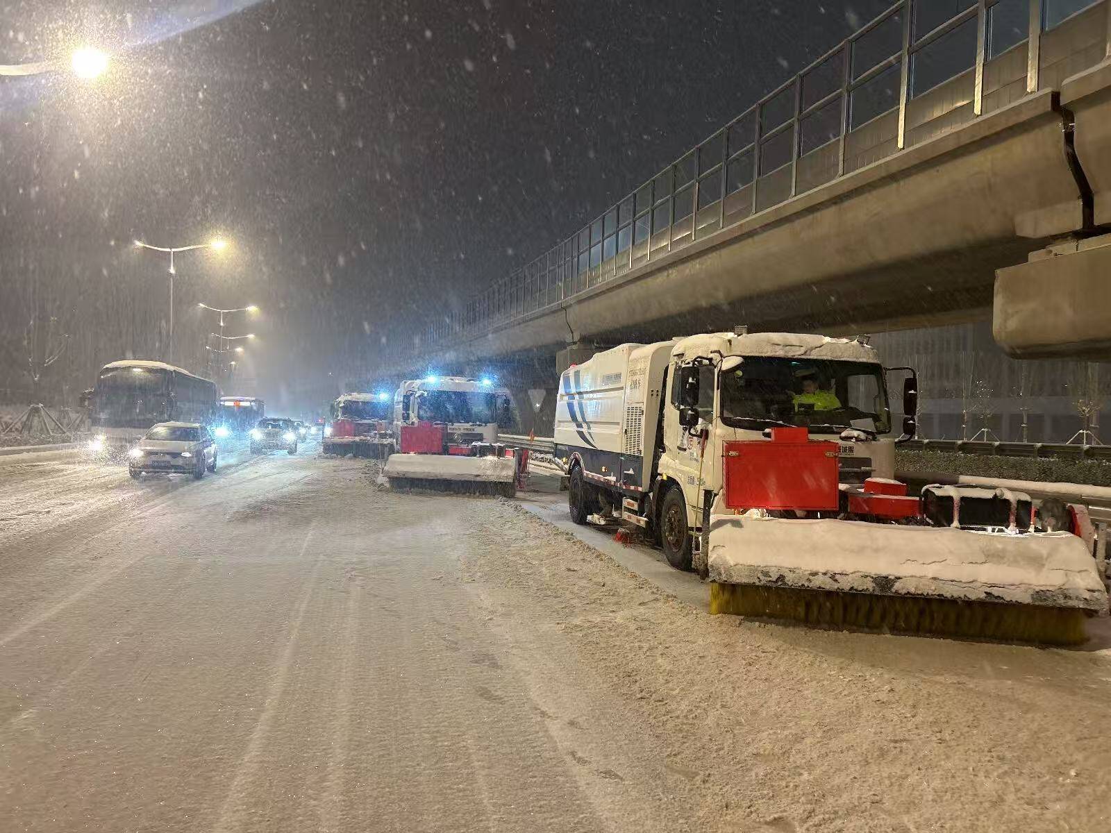 在12日夜间车辆高峰期结束后,历城城发同晟城服集团进一步加大清雪力度,组织全部机械和人力投入主次干道,昼夜奋战,采取“人歇车不歇”的方式,开展夜间连续作业,坚决做到“随下随清、雪中路通、雪停路畅”。