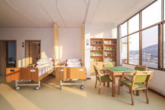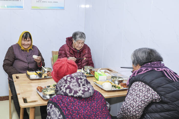 升级后的幸福院建筑面积近500平方米,功能布局科学完善。一层设有“可视化”厨房、社区食堂、洗衣房等,可满足40余名长者同时就餐;二层划分三大功能区,包含康养休息区、托育教室及文娱休闲区,配备专业护理床位、血压仪等康养设备及适龄婴幼儿教玩具;楼顶露台改造为休闲景观区,为老人与儿童提供户外活动空间。