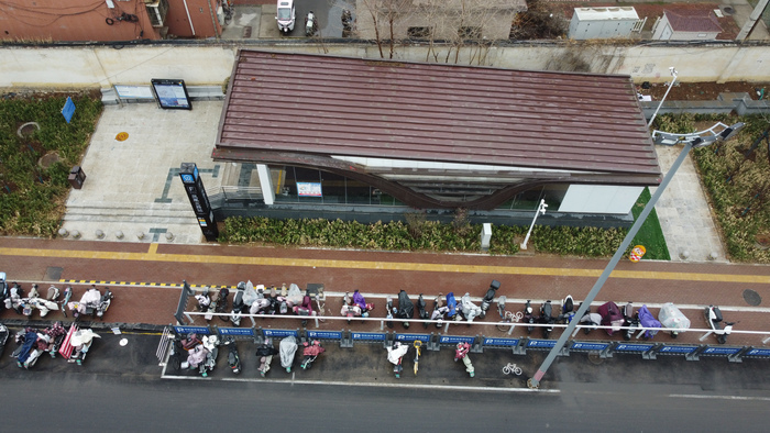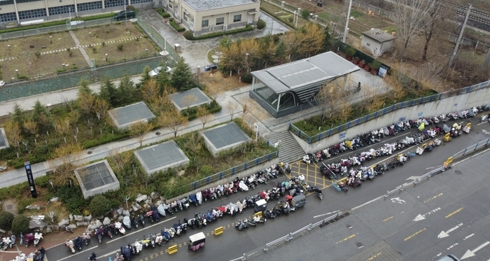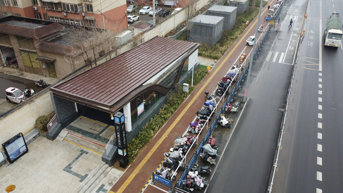 “核心症结就是历史规划跟不上客流增长,站点早期建设时未预留充足非机动车停放空间。”鲍山街道城管科停车管理办公室孙巍坦言,地铁2号线开通初期仅开放A、B、G口,B口前期无专属停车区域,靠居民自发无序停放。
