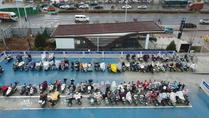 地铁6号线开通后,F口预留出了500-600辆。18日航拍可见,F口非机动车停车位空余多。下一步将把B口、C口车辆引流至D口新建停车场、F口现有泊位。