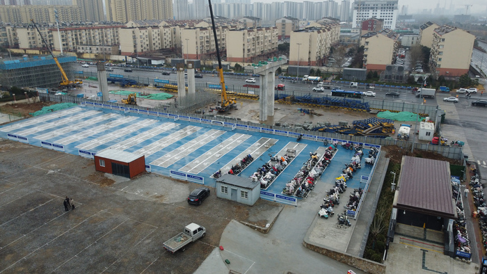 凤凰北路站D口南侧紧邻,新建一处大型非机动车停车场