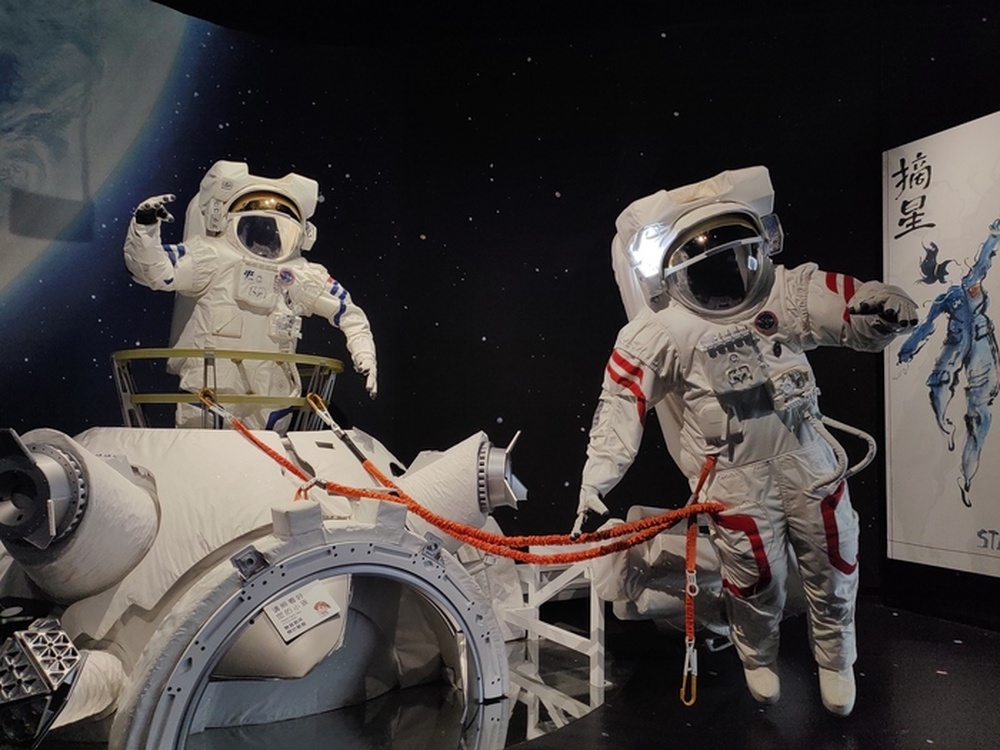 采风的最后一站,是坐落于融创国际体育中心的无穹·中国航天科技馆。这座总面积达5000平方米的大型全景沉浸式航天主题展馆,精心规划11个主题单元、20个特色展区,从高精度航天器模型到珍贵图文影像资料,从大型沉浸式艺术装置到尖端互动体验设备,全方位呈现了中国航天事业从古代探索到现代腾飞的壮丽画卷。“文旅+科技”的深度融合,让港沟文旅拥有了更加宽广的想象空间。记者们在现场体验了多个互动项目,从“火星基地”模拟舱里操控探测车,到“太空漫步”VR设备中感受失重,再到“火箭发射”控制台前倒数点火……