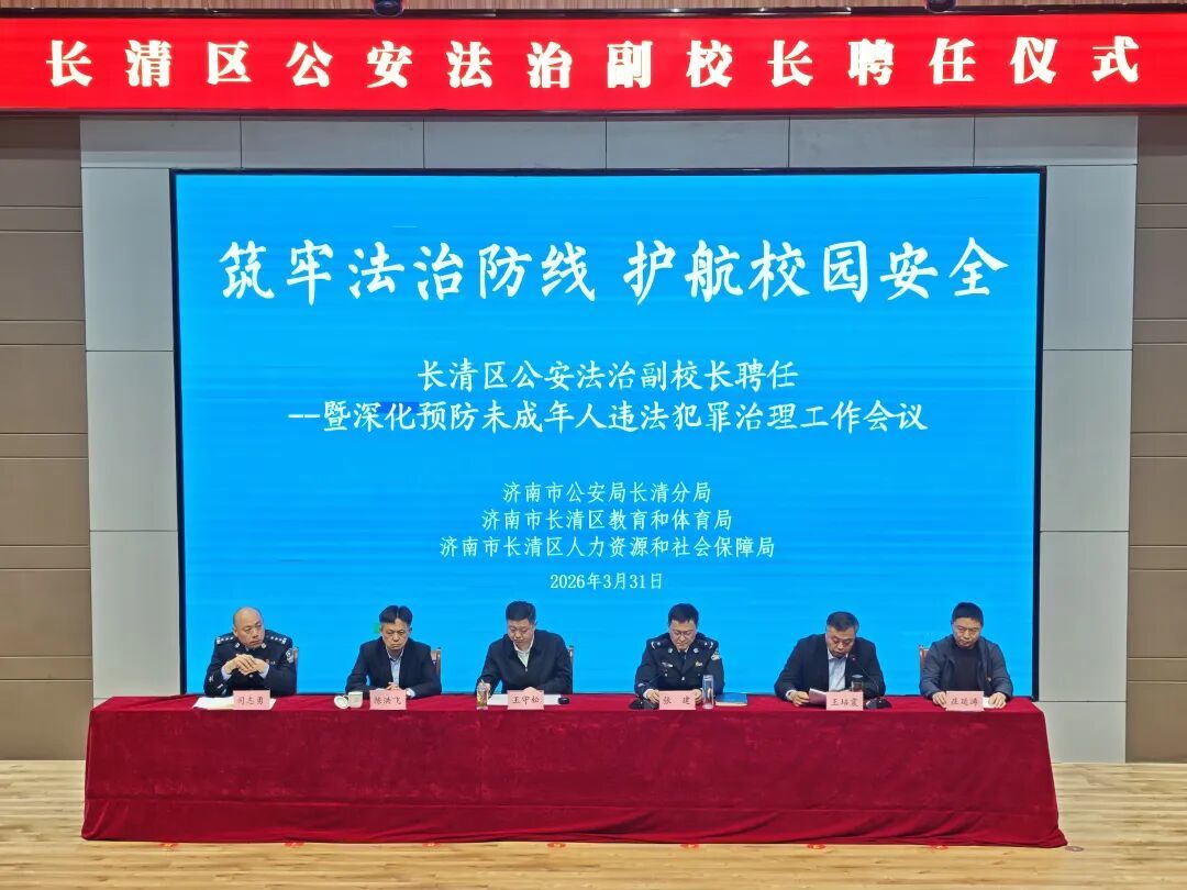 近日,济南市长清区举行公安法治副校长集中聘任仪式,强化警校协同联动,深入推进法治校园、平安校园建设,健全校园法治教育长效机制,切实提升师生法治素养和安全防范能力,护航未成年人健康成长。区委教育工委常务副书记、区教育体育局党组书记、局长王守松,市公安局长清分局党委委员、副局长张建,长清区公共就业和人才服务中心副主任陈洪飞,相关工作负责人,拟聘任公安法治副校长人选,各中小学负责人及师生代表参加活动。
