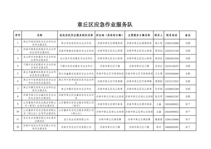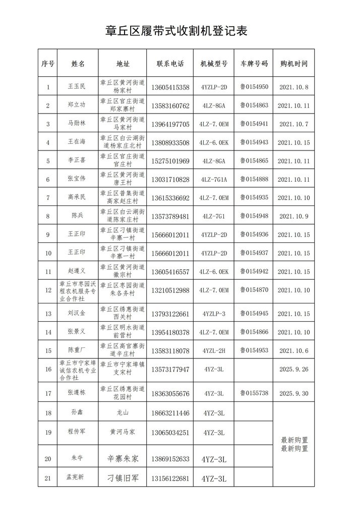 事关“三秋”生产!章丘区履带式收获收割机、应急作业服务队信息公布