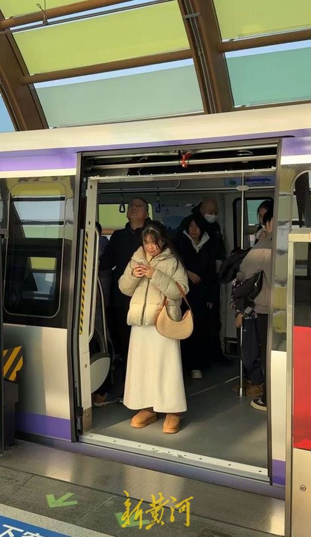 “这个设计挺新颖,没见过这么漂亮的站台。”刚出站的市民李女士带着孩子在此驻足拍照。