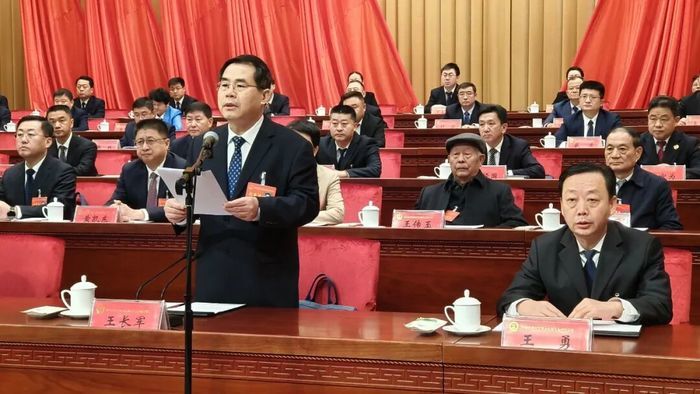 在热烈的掌声中,黄凯东代表区人民政府向大会作政府工作报告。报告共分三个部分:一是2025年工作和“十四五”发展回顾;二是“十五五”时期主要目标任务;三是2026年工作安排。