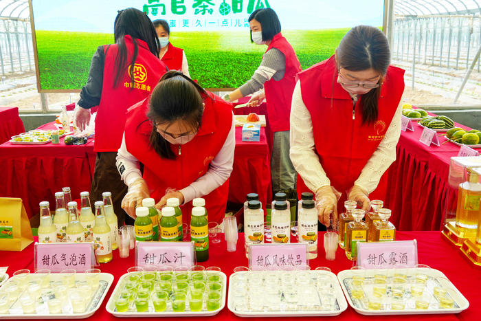 在精深加工方面,章丘加强与济南果品研究院合作,围绕甜瓜综合利用开展技术攻关,成功研发瓜干、果汁、果酒等系列产品,将过去论斤卖的鲜食甜瓜转化为附加值更高的精深加工产品。目前,甜瓜汁、甜瓜酒等产品已多次亮相高官寨甜瓜季,成为“泉城好品”矩阵中的新亮点。