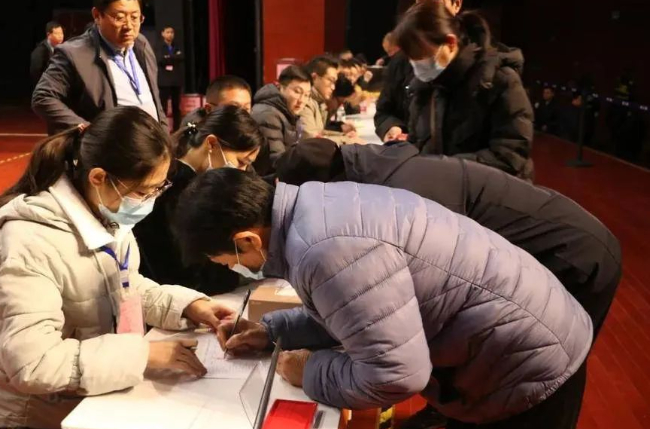 此次楼房分配采取“全程录像、现场确认、全程监督”的形式,在现场设置了人员信息查验区、等待区、抓阄区和登记确认区。每位户主按照预先通知的入场顺序依次入座,并安排每10人一组抽取抓阄顺序号;全部完成后,再根据所抽取的顺序阄号依次前往抓阄区抓取对应面积的户型楼房阄和储藏室阄;打开后,至登记区完成登记手续。整个选房过程,工作人员分工明确、认真负责,选房群众耐心等待、积极配合,全场秩序井然、和谐欢乐,居民们的激动与喜悦之情溢于言表。