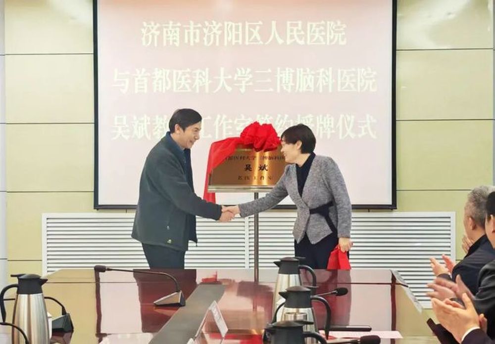 近日,济南市济阳区人民医院与首都医科大学三博脑科医院吴斌教授工作室签约揭牌仪式在区机关服务中心三楼会议室隆重举行。