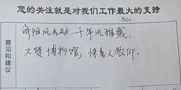 “济阳好风光,千年风雅藏。大赞博物馆,惊喜又敬仰!”来自黑龙江大兴安岭地区的刘先生在博物馆意见簿上认真写下留言。刘先生说:“这个假期,我陪同家人来山东旅游,通过在网上了解到了济阳博物馆;这次参观下来,博物馆的展览内容、服务细节和文化体验方面都做得不错,为济阳博物馆点赞!”