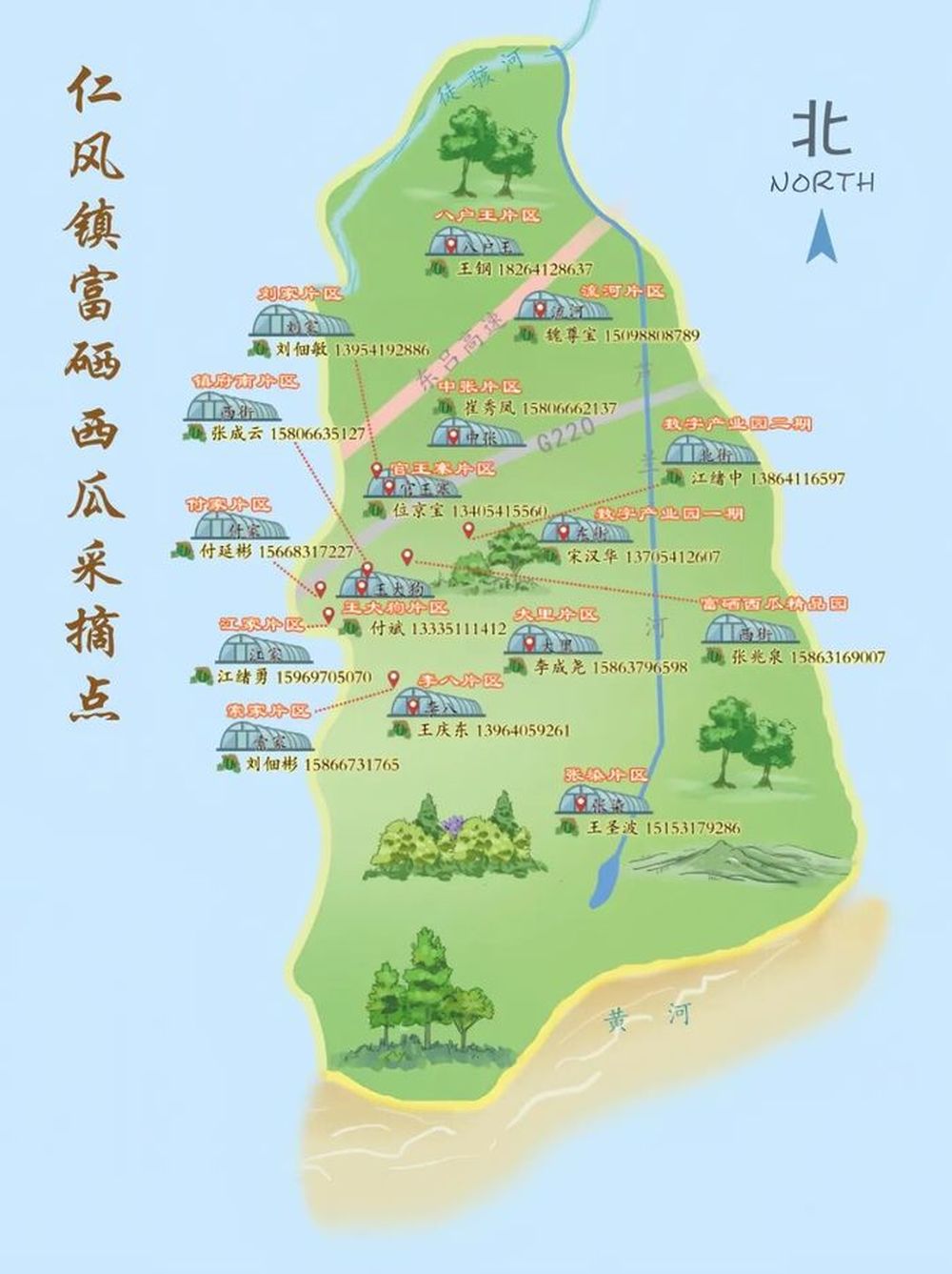 仁风镇位于济南市济阳区东北部,济阳、商河、惠民、邹平四县交界处,地处北纬37度黄金纬度带,南依黄河,北临徒骇河,西瓜大棚4000余个,种植面积6000余亩,年产量达2.5万吨,产值突破6亿元,是“中国西瓜之乡”。