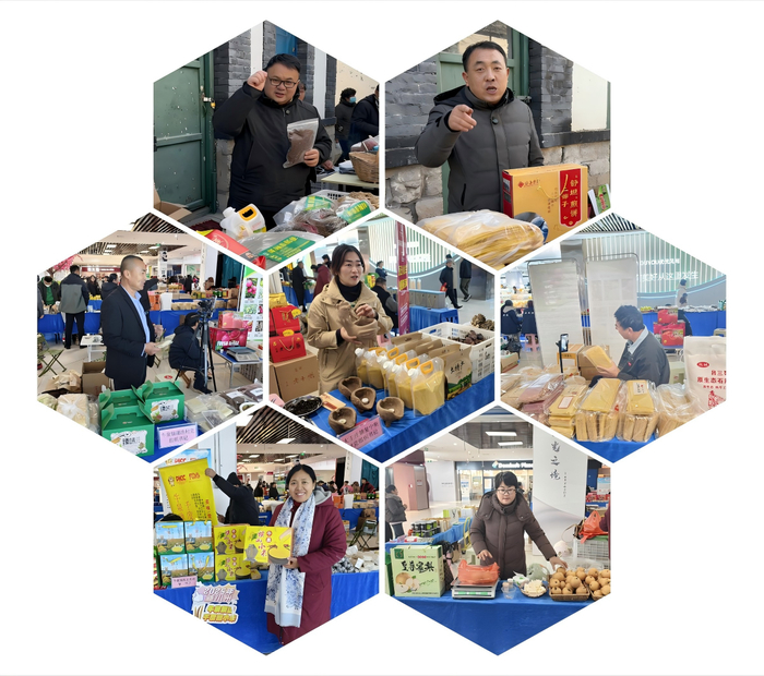 元旦假期,“印象莱芜”2026年非遗技艺暨名优产品展示会在茂业百货厅举办,鲁中汇源、顺香斋、桑园公社等多家企业将直播间搬到展会现场,为果汁、香肠、桑葚干等优质产品打广告;牛泉蒲洼、大王庄复宁街、羊里城子县等村书记开启“直播”模式,为豆腐皮、花馍、花生等本村农货做推销,活动现场人头攒动、热闹非凡。