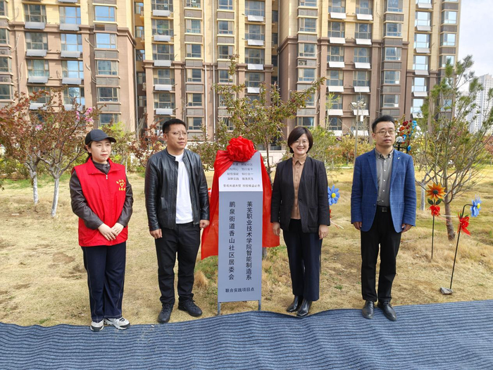 莱芜职业技术学院智能制造系劳动教育实践基地揭牌仪式成为本次活动的重要亮点。莱芜职业技术学院智能制造系党总支书记田欣分享了学院教育实践基地建设的理念与社校合作的美好愿景,表达了学院为社区提供志愿服务、专业支持的坚定决心。随后,学院领导与社区代表共同为教育实践基地揭牌,现场掌声雷动、喝彩不断,大家纷纷用镜头记录下这一重要时刻。此举标志着香山社区社校联动实践平台正式搭建,为大学生社会实践搭建了新舞台,也为社区服务发展注入了高校专业力量,开启了校社携手、共促发展的全新篇章。望族幼儿园亓园长也上台表达了对社区与高校的感谢,希望以此次活动为契机,深化多方联动,为孩子们打造更多元的成长场景。