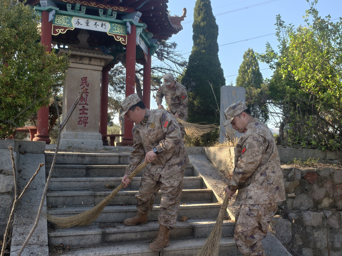 全体民兵整齐列队、脱帽肃立,向革命先烈默哀三分钟,深切缅怀为民族独立、人民解放英勇献身的英烈。茶业口镇红色民兵排向烈士敬献花圈,清扫墓地,瞻仰烈士事迹。在静默中追忆烽火岁月,感悟英烈们不畏牺牲、忠诚奉献的崇高精神。